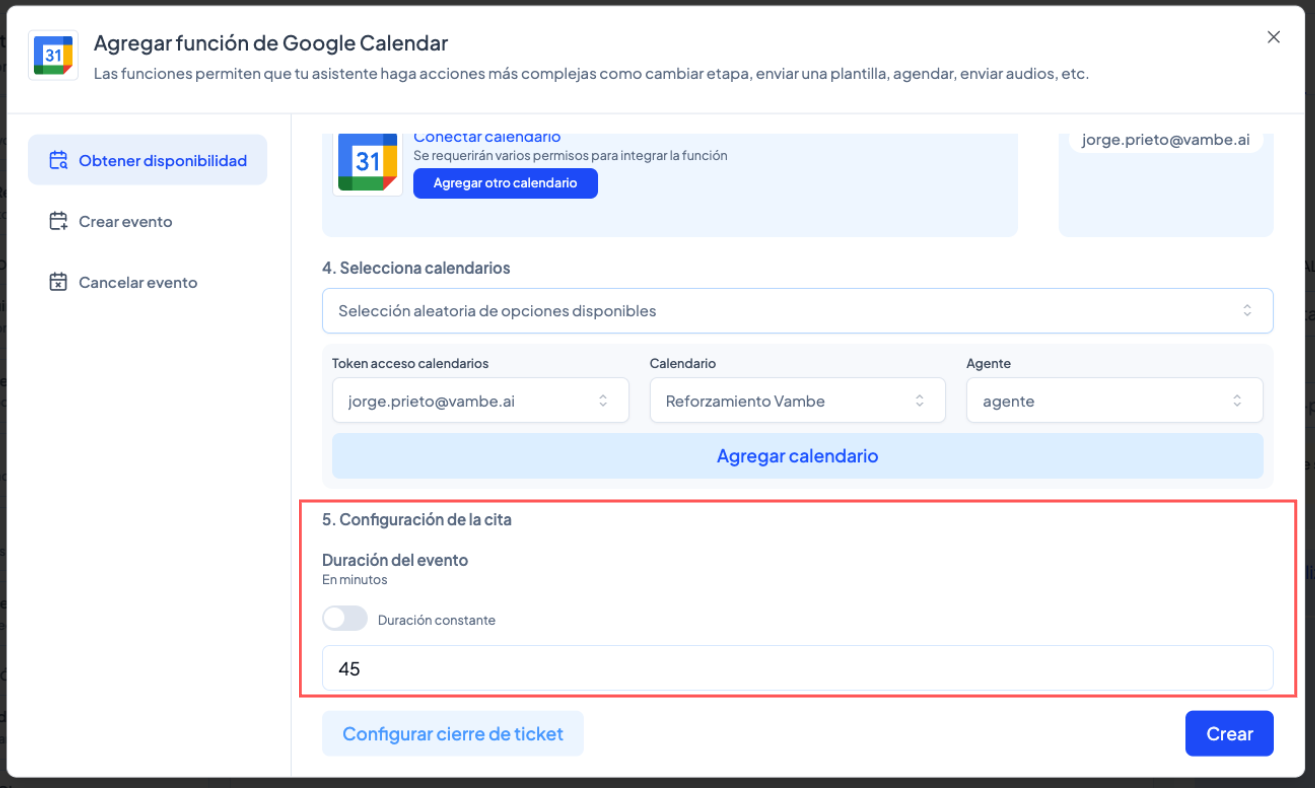 ✅ Tener Google Calendar conectado correctamente en Vambe.