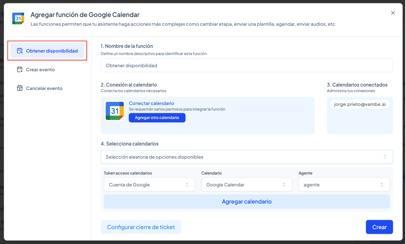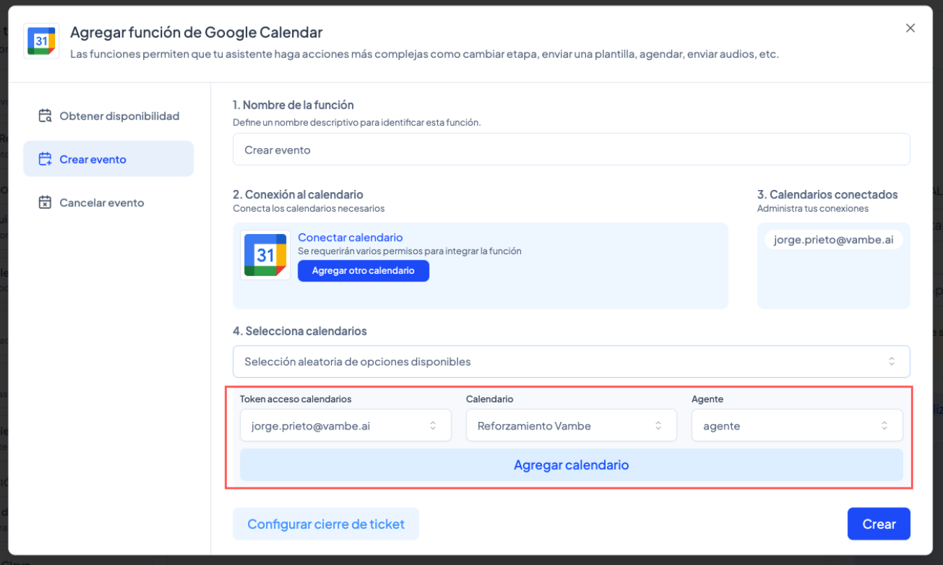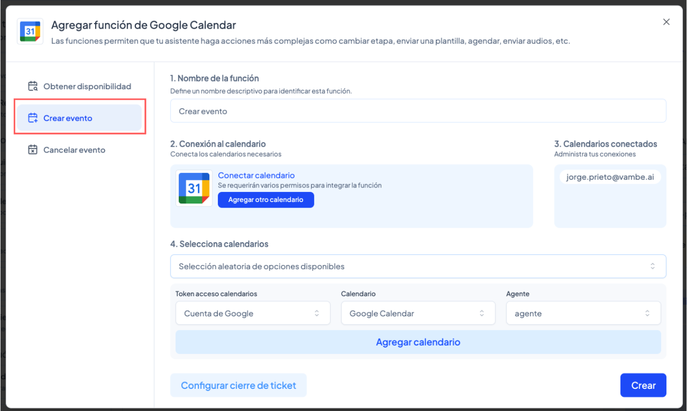 Si aún no lo has hecho, revisa el artículo: Cómo conectar Google Calendar en Vambe.