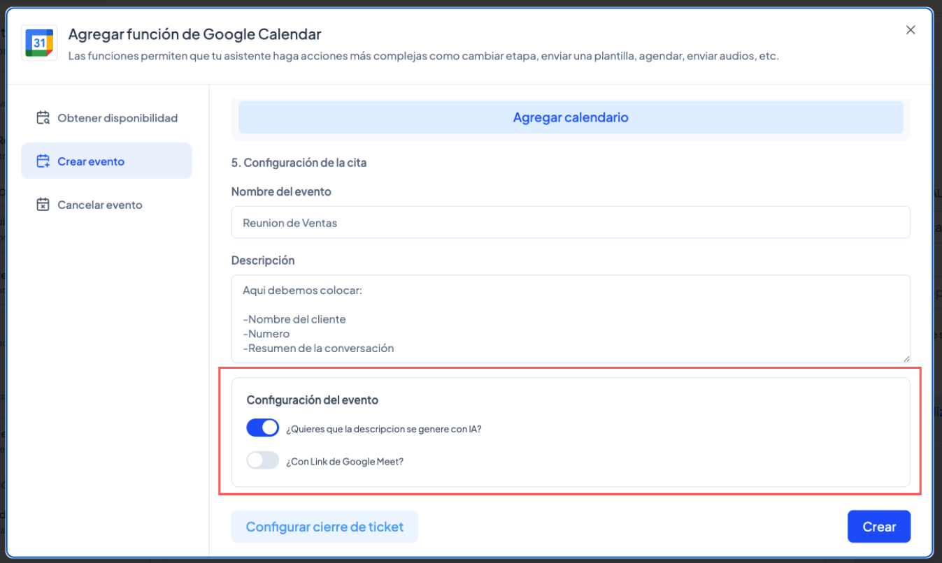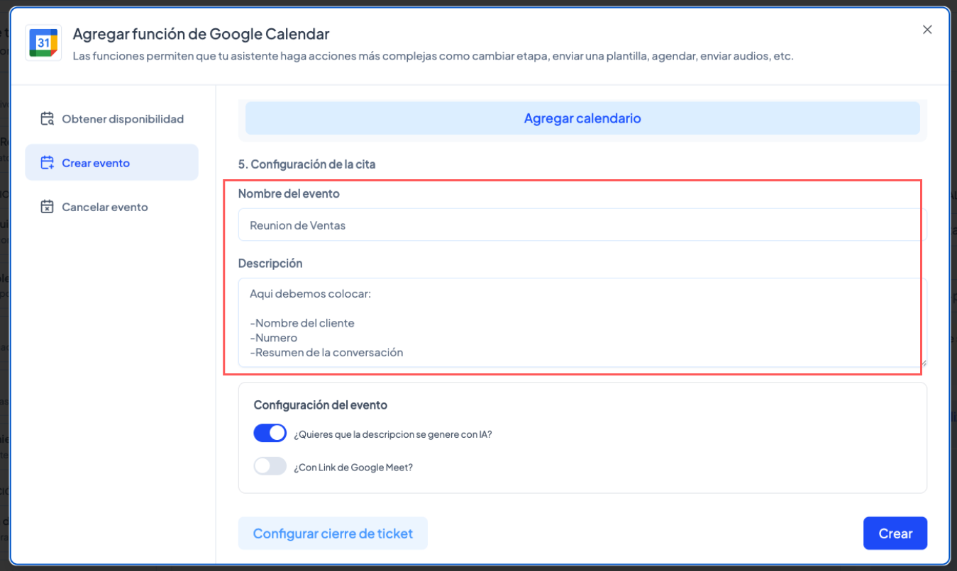 Crear el evento en Google Calendar