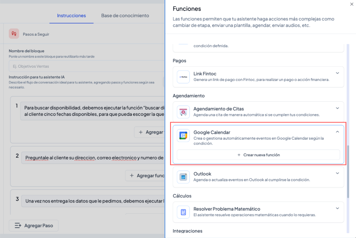 En este artículo solo nos enfocaremos en el bloque “Pasos a seguir” del asistente agendador usando Google Calendar, ya que es la única parte que cambia.