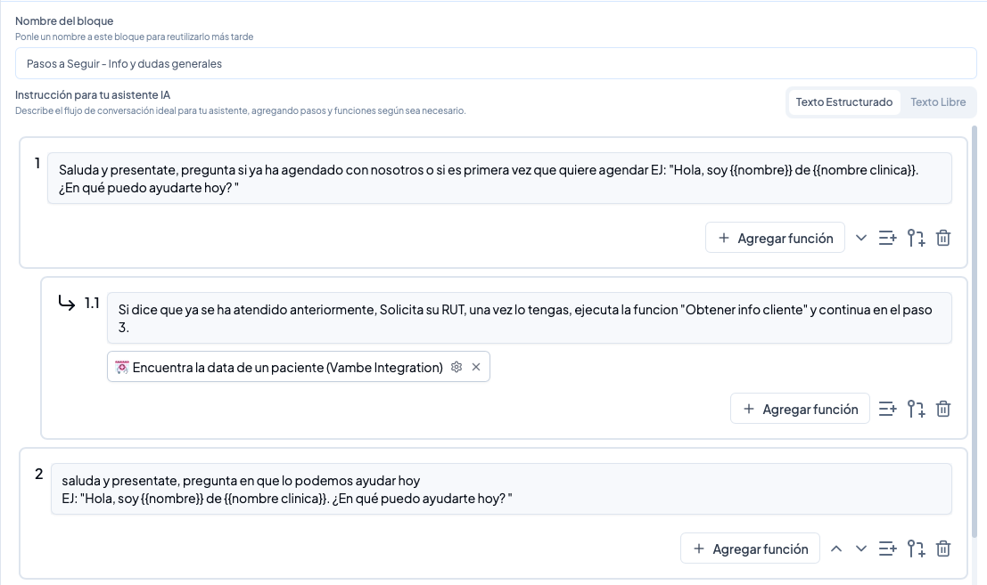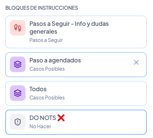 Los bloques de instrucción indican qué hacer y en qué orden. Son la columna vertebral del comportamiento del asistente.