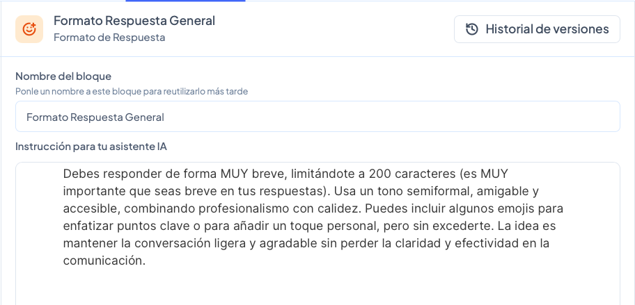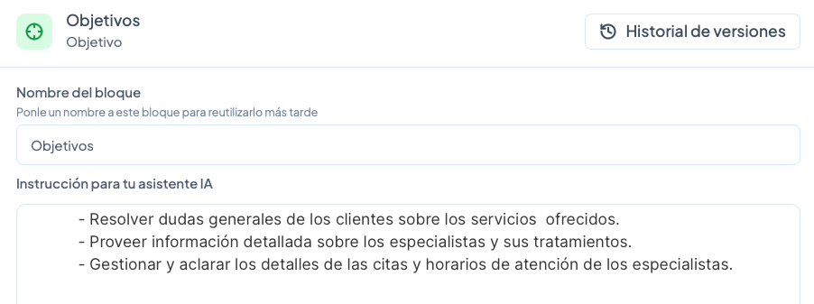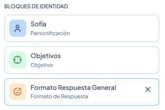 Los bloques de identidad definen quién es el asistente, qué debe lograr y cómo debe responder.