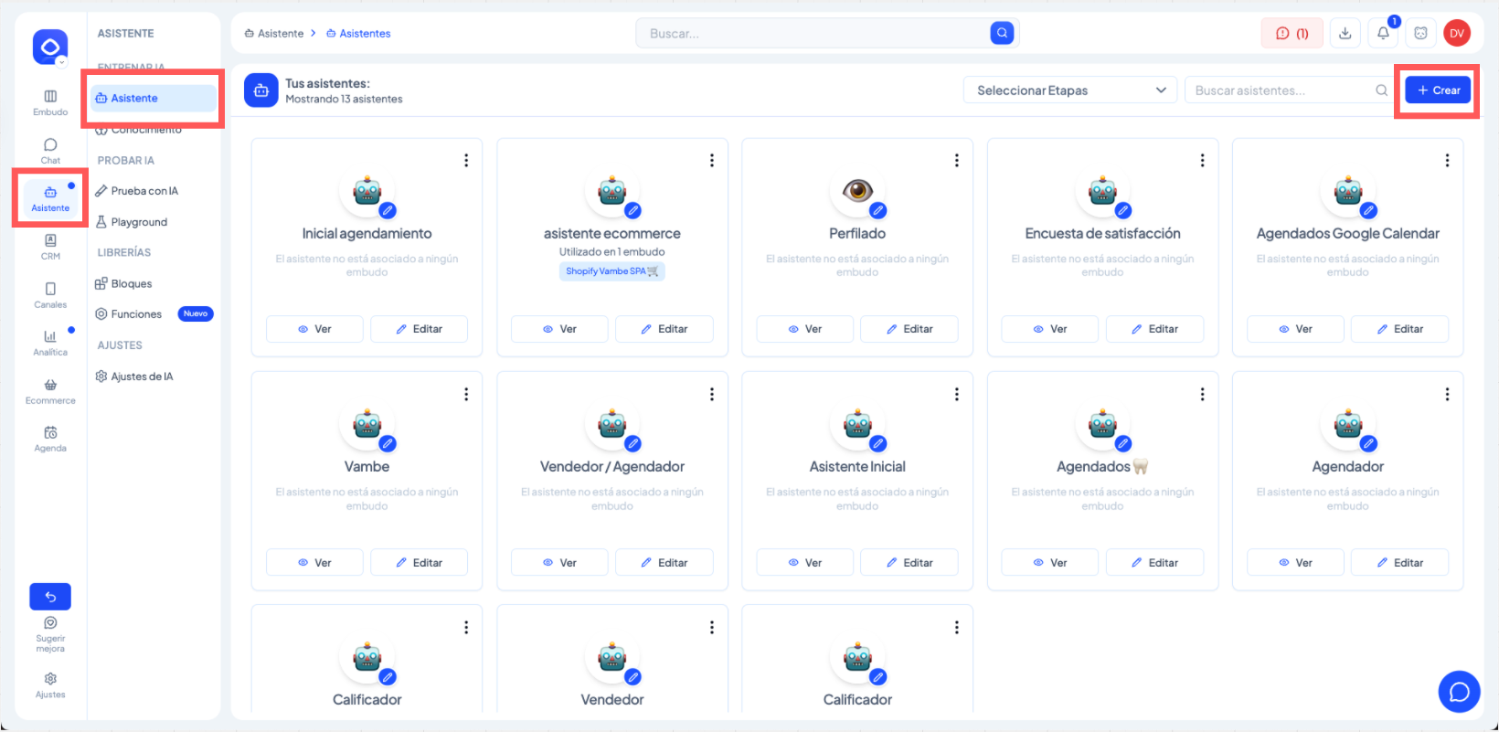Si ya tienes tu asistente creado, debes acceder a él: "Cómo ingresar al asistente de Inteligencia Artificial"