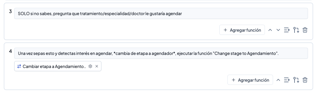 Antes de comenzar, asegúrate de que las etapas del embudo ya estén creadas (Información y dudas generales, Agendamiento, Agendados, Ayuda humana, etc.).