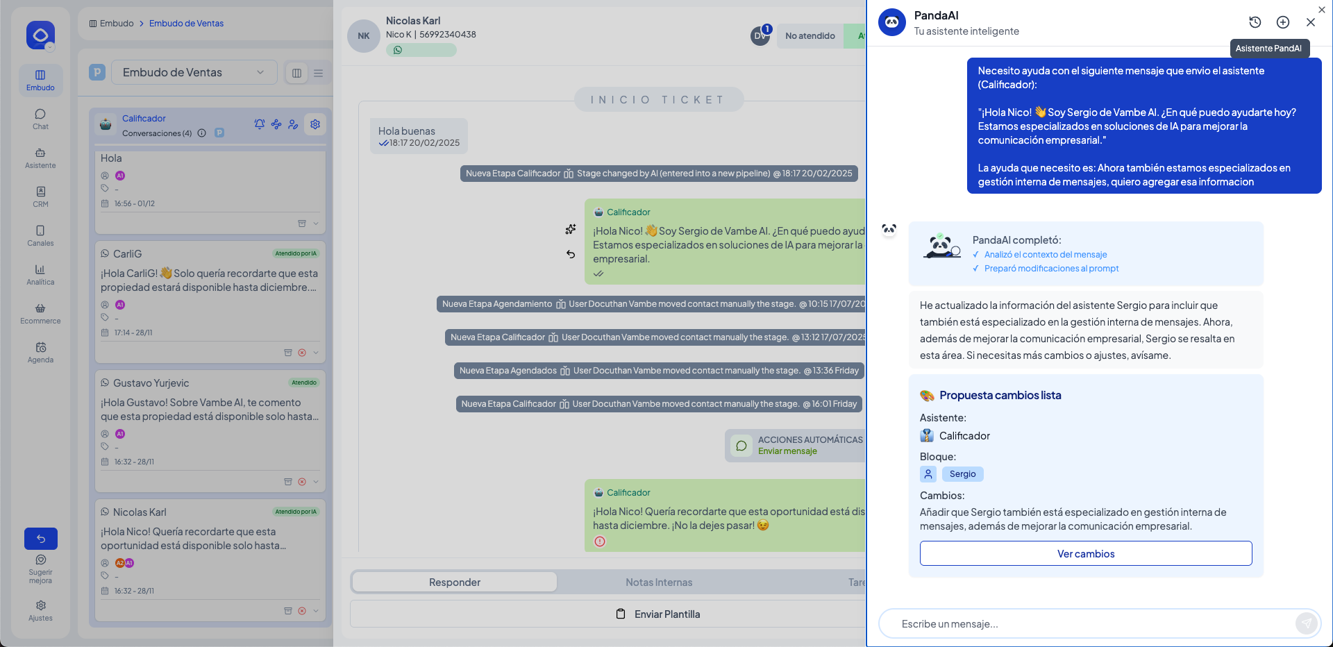 PandaAI actúa como un supervisor del asistente, ayudándote a perfeccionarlo conversación por conversación.