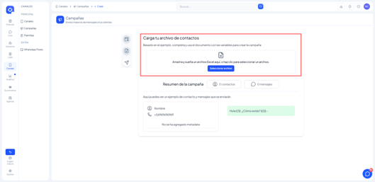 En la barra lateral izquierda, ingresar a Canales y luego en Campañas.