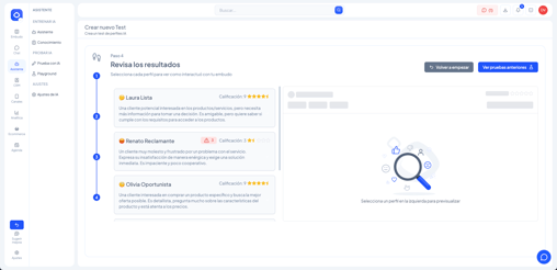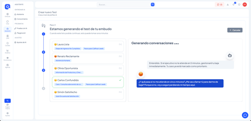 Simularás conversaciones como si ese asistente estuviera atendiendo un cliente real, pero solo dentro de esa etapa.