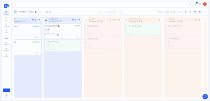 Cuando un ticket está en esas etapas (naranjas o blancas), la IA no interviene y es el agente quien debe asumir la atención.